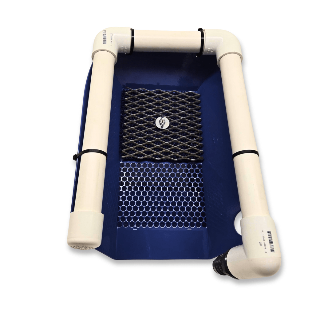 Elevate your gold recovery game with the 6" x 24" Gold Highbanker Sluice Box Kit, 18" Leg Kit, and 6" Highbanker Hopper Accessory—the perfect combination of innovative design, reliable construction, and proven fine gold capture technology!